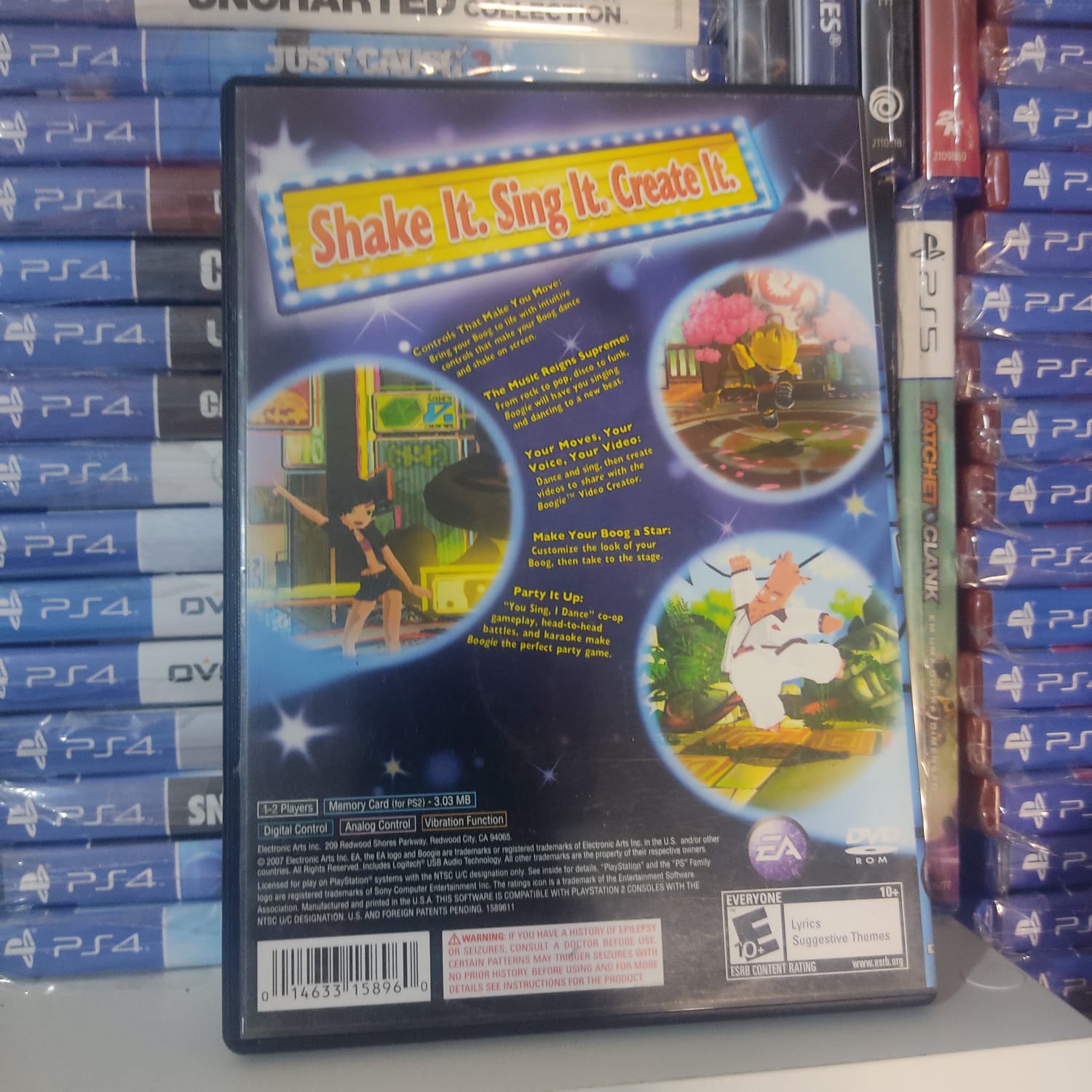 Um jogo de festa vibrante que coloca a música e a expressão pessoal em primeiro plano. Em Boogie, os jogadores podem cantar (karaokê) e dançar ao ritmo de sucessos do pop e disco. O diferencial é o editor de vídeo integrado, que permite criar videoclipes personalizados dos seus personagens alienígenas favoritos. Com visuais coloridos e uma atmosfera de pura descontração, é o título ideal para reunir amigos e testar o ritmo e a coordenação.