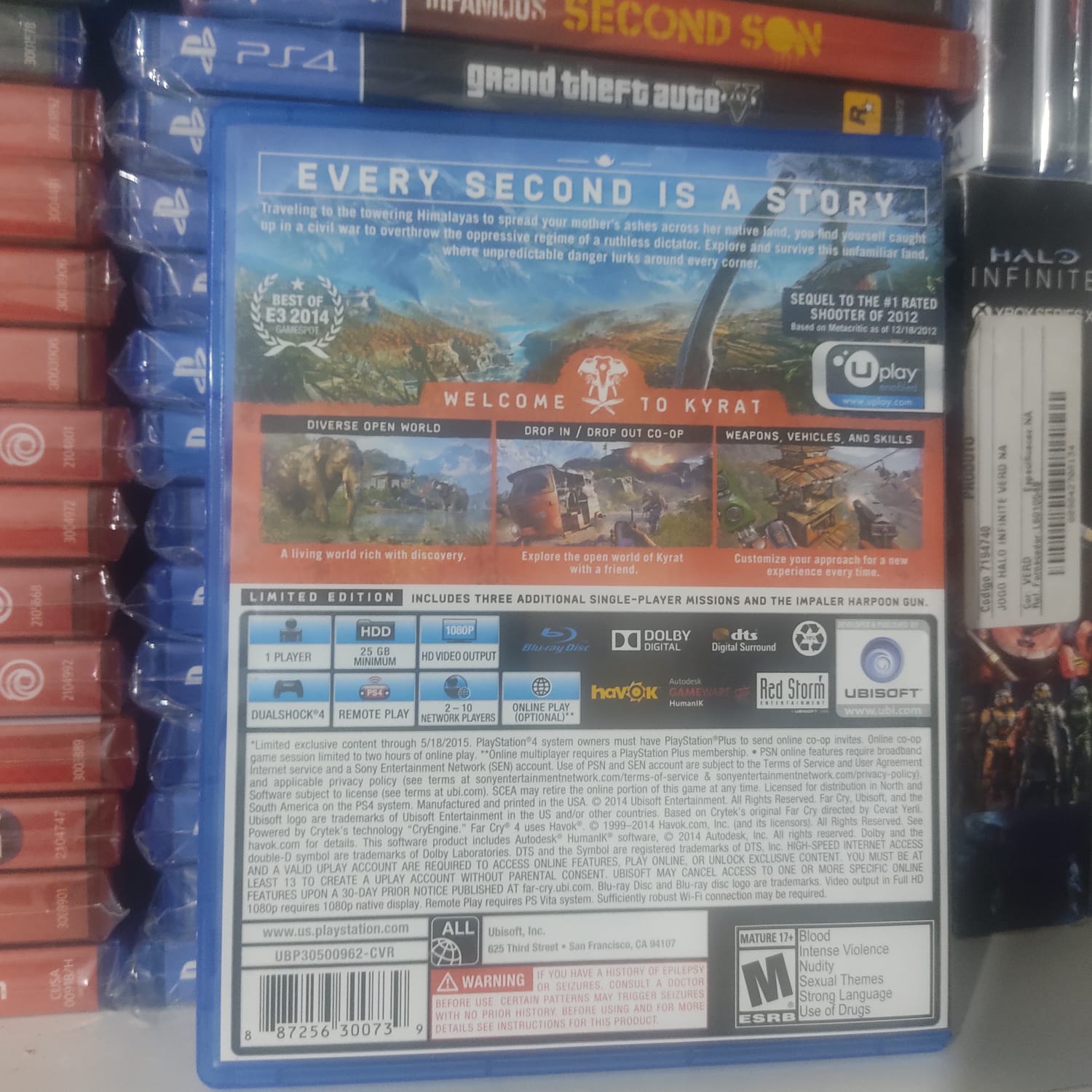 Escondido nas cordilheiras do Himalaia reside Kyrat, um país rico em tradição, mas mergulhado em uma guerra civil sangrenta. Você é Ajay Ghale, que viaja para Kyrat para cumprir o último desejo de sua mãe. Ao chegar, você se vê envolvido em uma luta para derrubar o regime opressor do ditador Pagan Min. Explore um mundo aberto vasto, onde o perigo espreita em cada esquina e cada decisão conta.