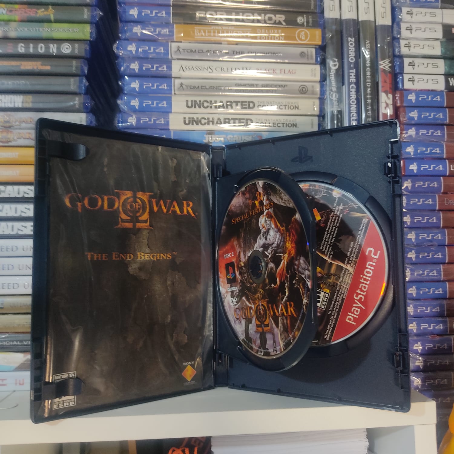 Kratos retorna nesta sequência monumental que levou o hardware do PlayStation 2 ao seu limite absoluto. Após ser traído por Zeus e destituído de seus poderes como Deus da Guerra, o Fantasma de Esparta inicia uma jornada épica para alterar o seu próprio destino.