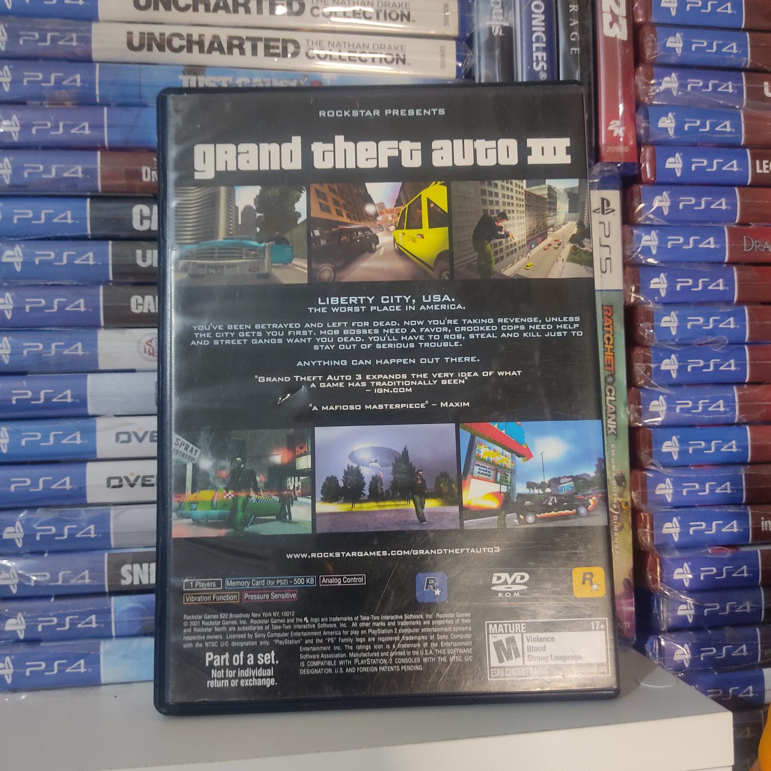 O jogo que mudou o mundo dos games para sempre. GTA III transporta o jogador para Liberty City, um mundo aberto 3D vivo e perigoso onde você é livre para fazer o que quiser. Com uma narrativa madura, inspirada em filmes de máfia, você assume o papel de Claude em uma jornada de vingança. Roube carros, aceite contratos de facções rivais e explore uma cidade repleta de segredos. É o título que definiu o gênero sandbox e é indispensável em qualquer coleção de respeito.