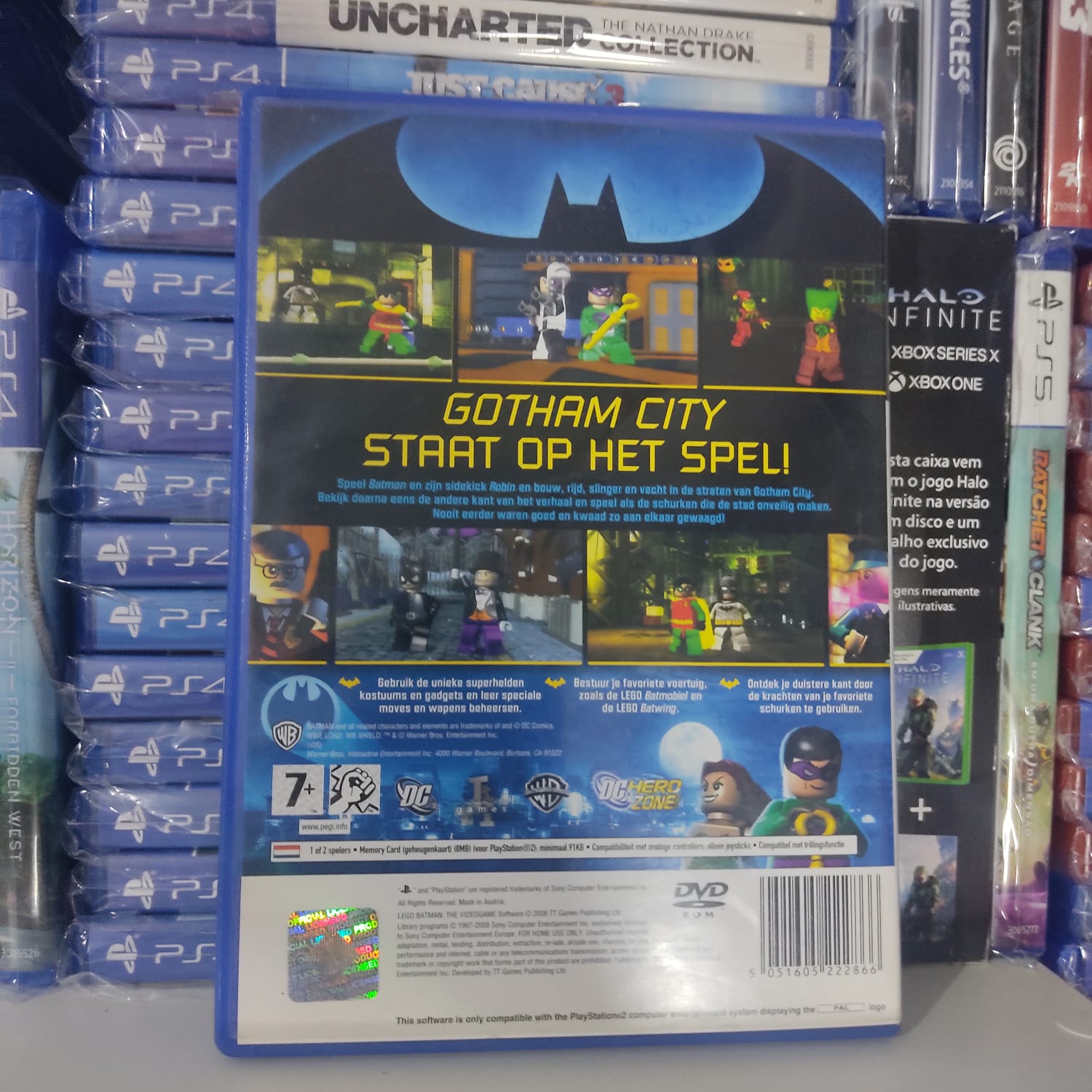 Uma aventura divertida e carismática que reconta o universo do Cavaleiro das Trevas com as peças de LEGO. O jogo permite jogar tanto com os heróis quanto com os vilões, cada um com habilidades únicas para resolver puzzles e enfrentar inimigos em cenários clássicos de Gotham City.